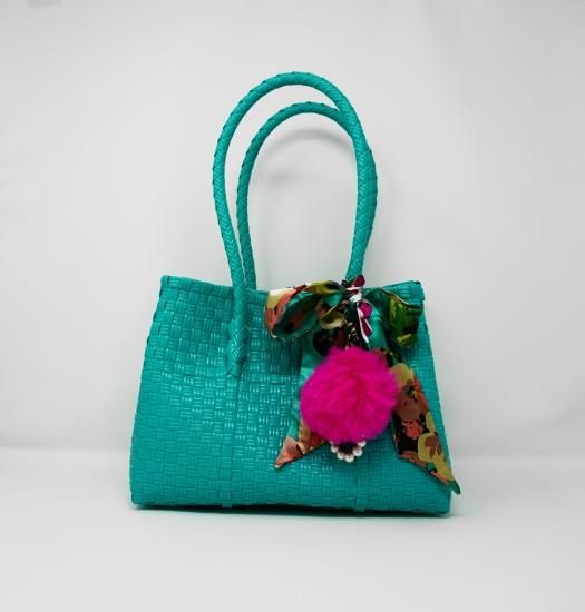エメラルドグリーンファーチャーム・ツイリー付き。